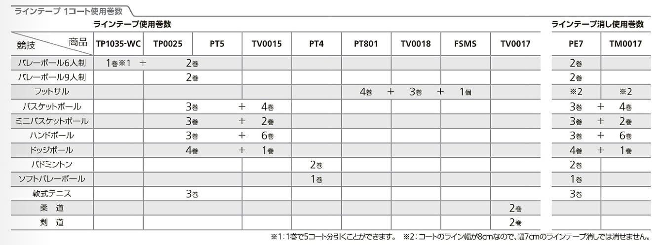 鮮やかな発色で見やすいコートを作ることができます。 伸縮性がなく、直線引きに適しています(非伸縮テープ) 本体サイズ: 幅40mm 長さ60m (2巻入) バトミントン、 ソフトバレー用ポリラインテープ(日本製) 素材: ポリプロピレン